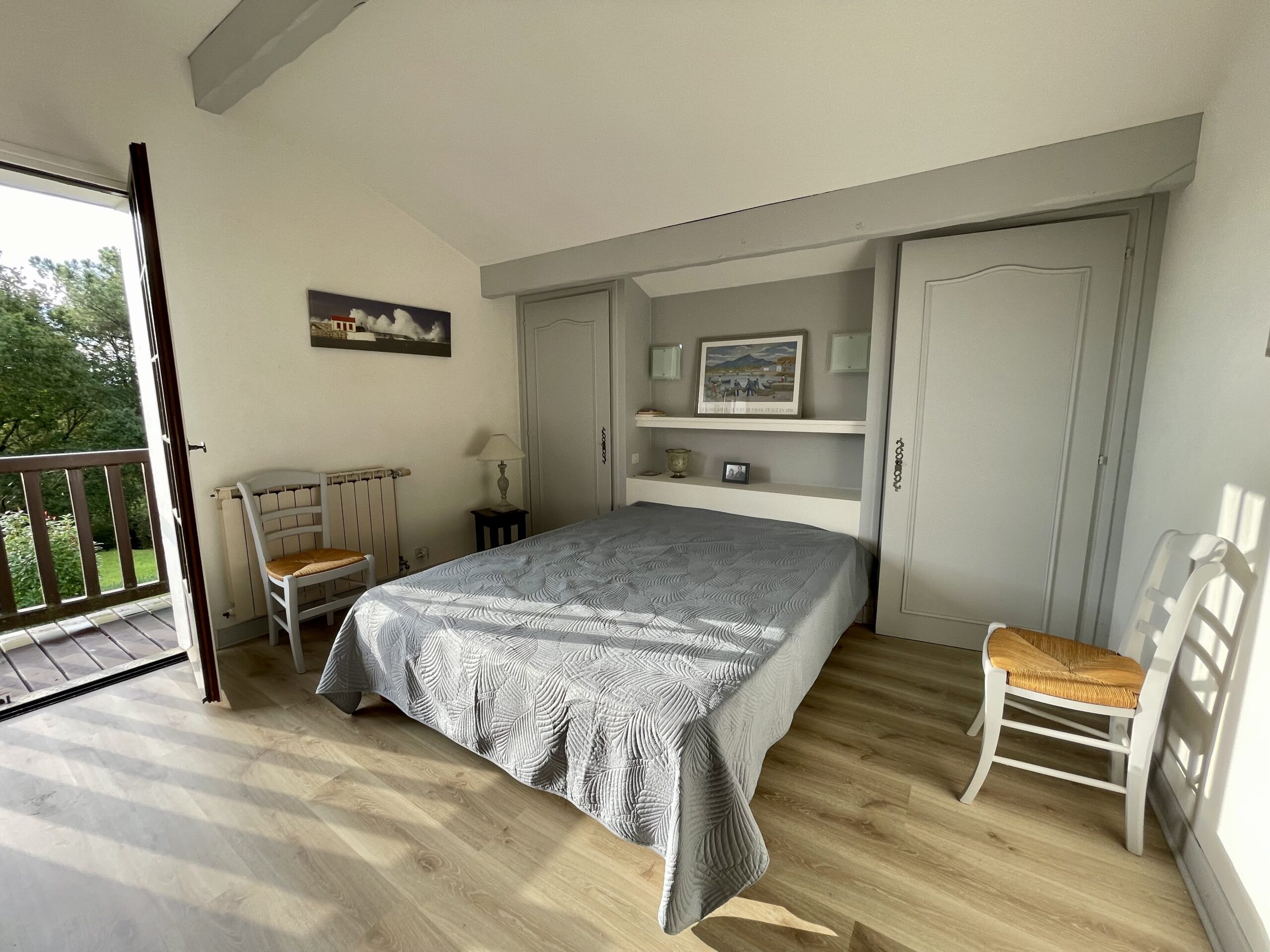 À l’étage, vous trouverez trois chambres dont une avec un balcon, une salle de bains et un WC séparé.